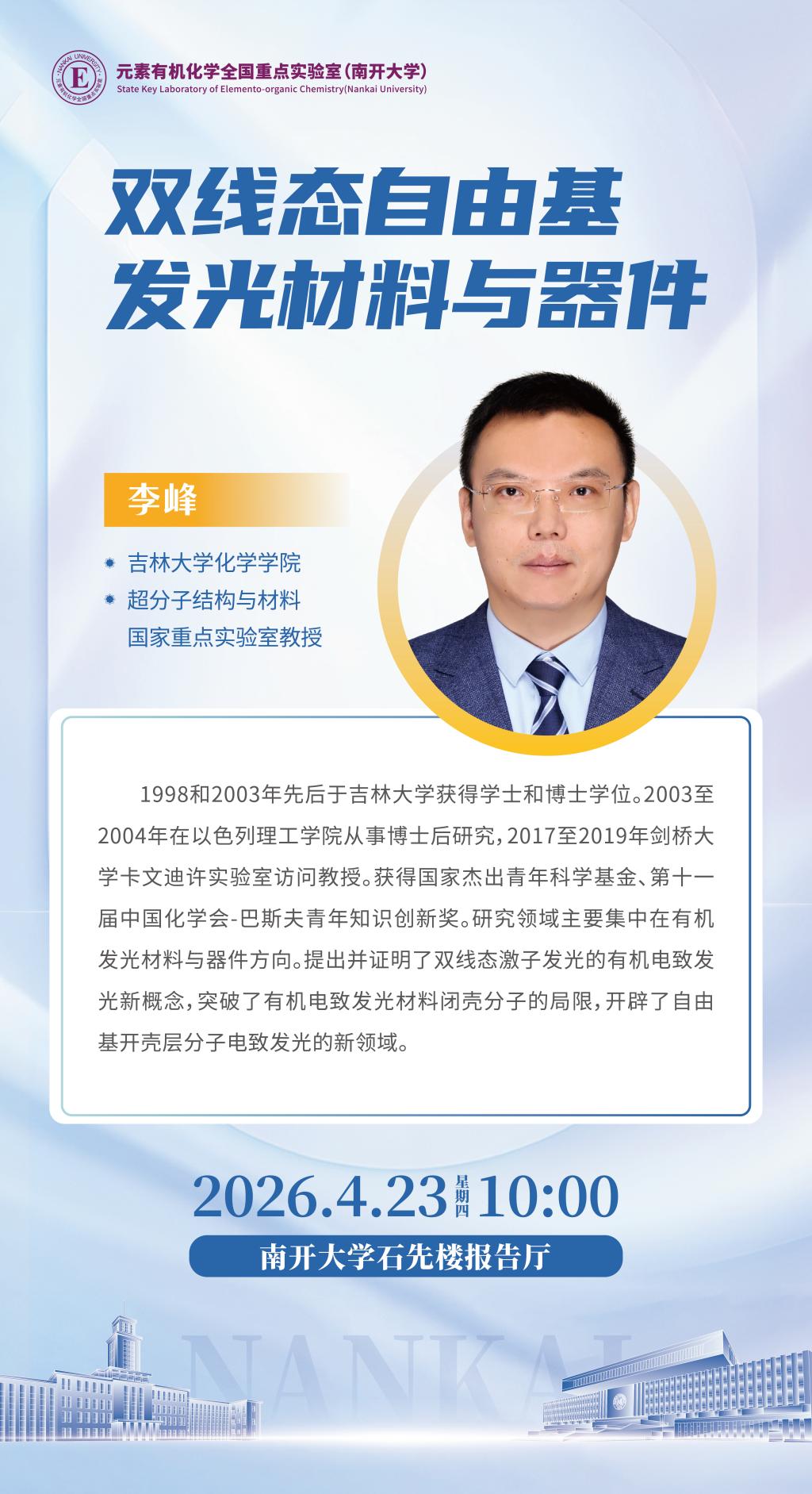 学术报告通知: 李峰 教授(吉林大学)