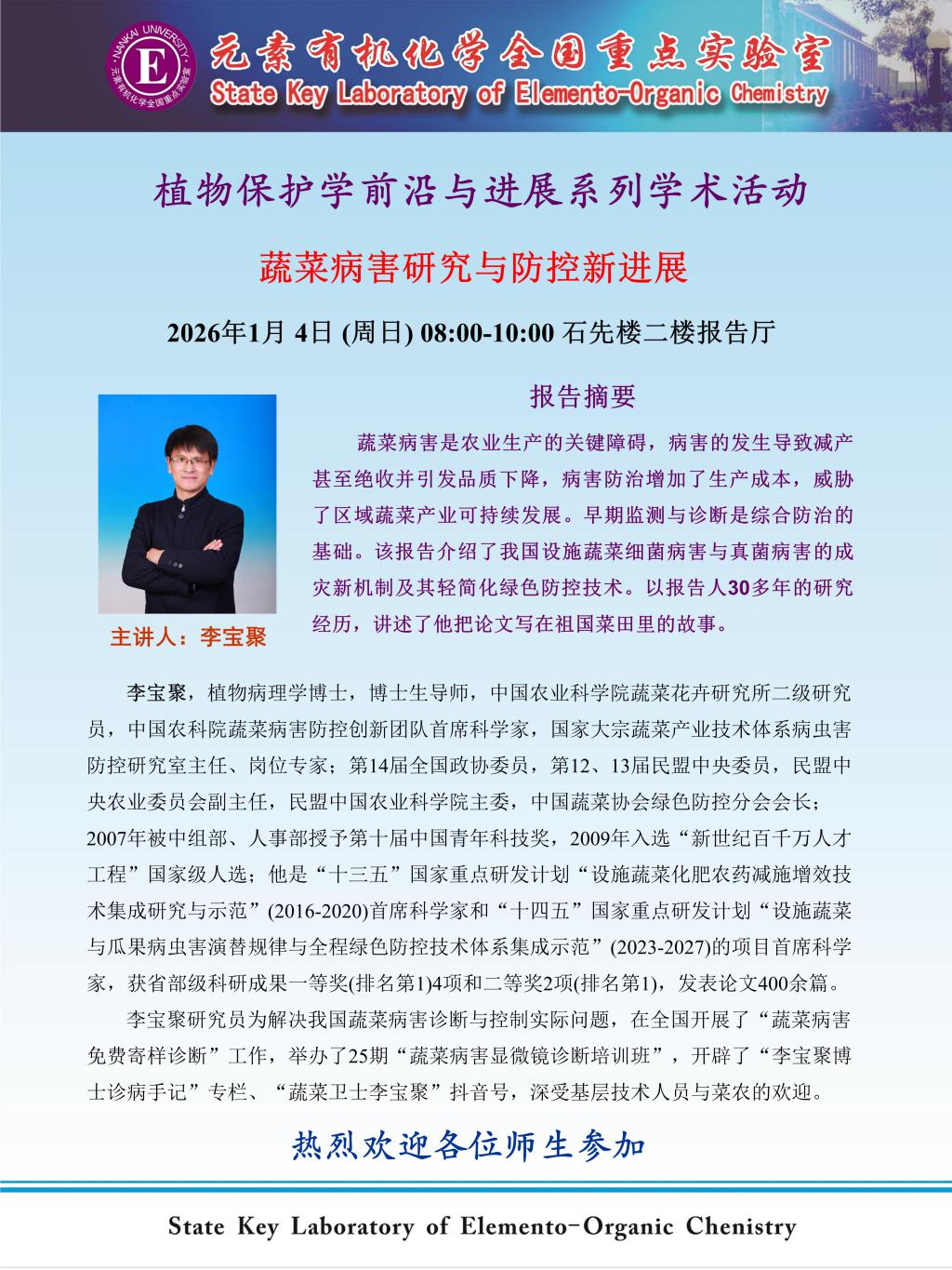 植物保护学前沿与进展系列学术活动:李宝聚 研究员(中国农业科学院)