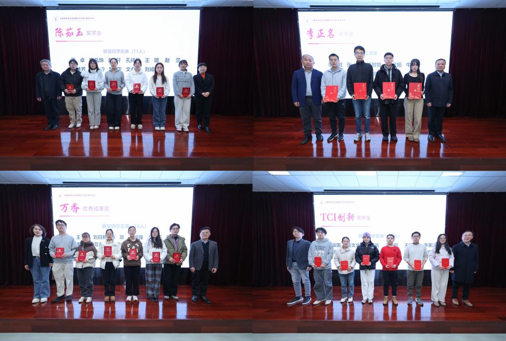 随后,奖学金评选委员会主任周传政详细介绍了2024-2025 学年奖学金评选情况,并公布获奖学生名单。本次颁奖典礼共颁发四大类奖学金,分别为陈茹玉奖学金、李正名奖学金、万香优秀成果奖和TCI创新奖学金,到会领导为获奖学生颁发了荣誉证书。获奖学生代表在发言中表达了对学校、捐赠方及老师的诚挚谢意,并表示将以此为动力,在科研道路上继续努力,不负期望。