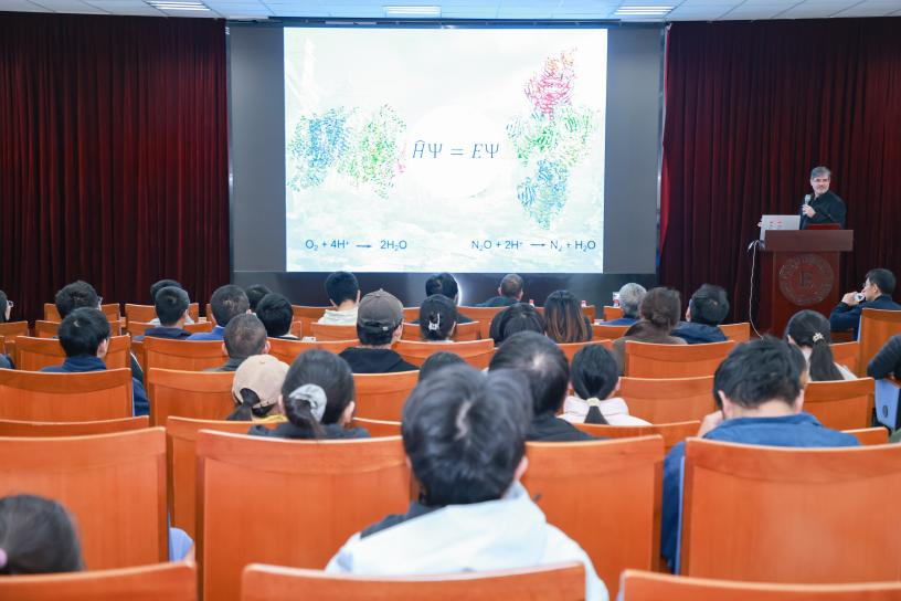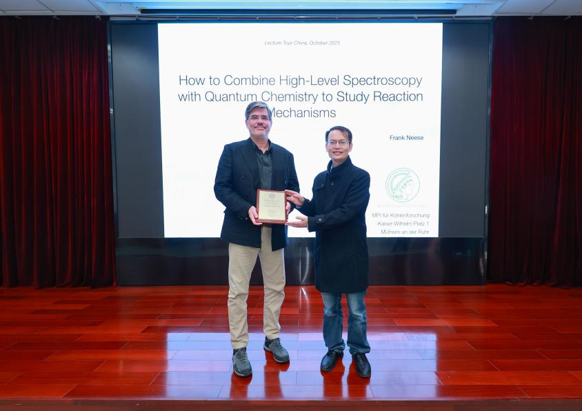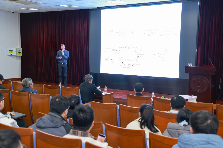 10月23日,德国科学院院士、德国马克斯· 普朗克研究所 Frank Neese 教授,Tobias Ritter 教授应元素有机化学全国重点实验室邀请做客南开有机化学讲座,与重点实验室师生交流互动之余,在石先楼学术报告厅分别作了题为“How to Combine High-Level Spectroscopy with Quantum Chemistry to Study Reaction Mechanisms”和“Late-Stage Functionalizations”的精彩学术报告。会议由重点实验室彭谦教授主持,重点实验室及化学学院师生近200人参加了此次学术交流活动。