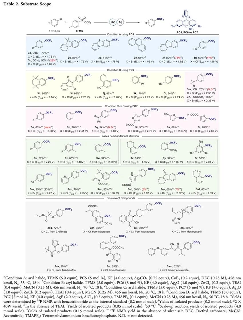 该方法展现了优异的底物兼容性:常规芳基卤代物、杂环化合物、生物活性分子等都能顺利转化为相应的三氟甲氧基产物(Table 2)。
